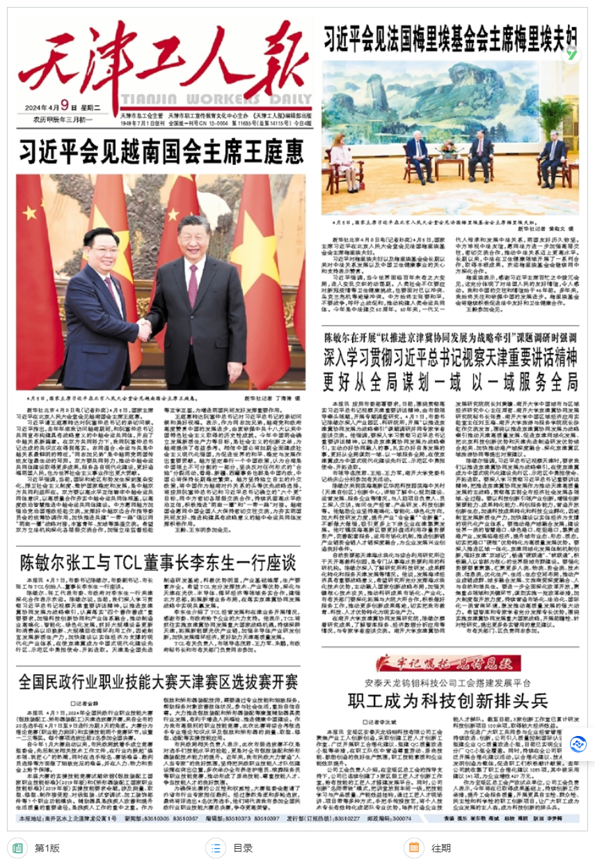 近日,《天津工人报》在头版刊登了安泰天龙钨钼科技公司工会搭建k8凯发(中国)天生赢家平台的先进事迹,原文如下: