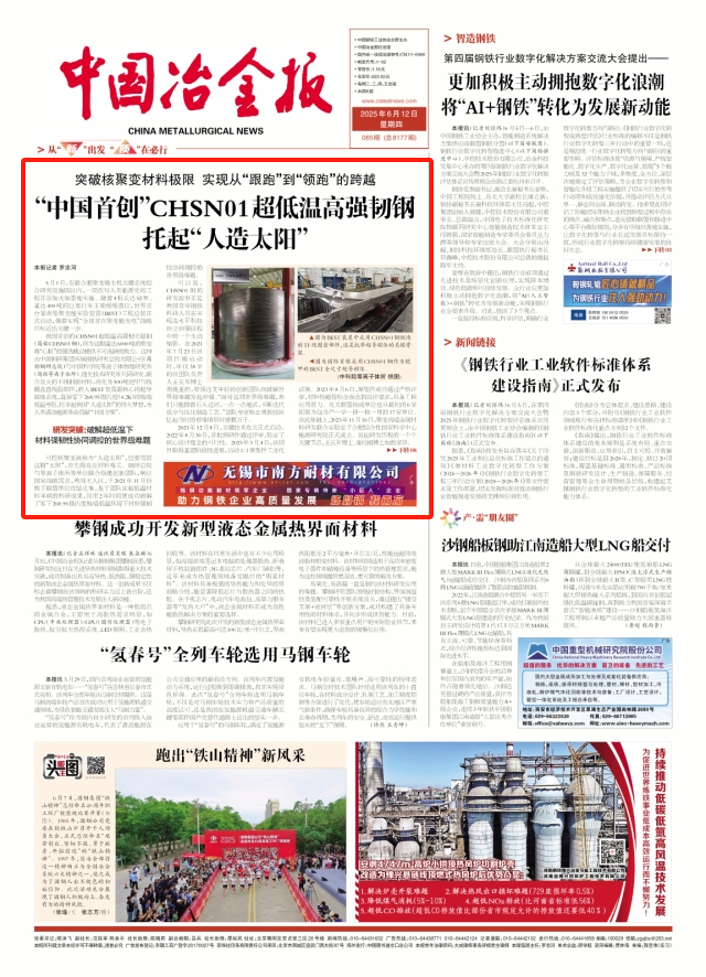 ´ÓʵÑéÊÒµ½¹¤Òµ»¯µÄ¿çÔ½ÒìÑù¼èÄÑ¡£ÎªÁËÍê³É°Ù¶Ö¼¶ÅúÁ¿Ïû·Ñ£¬k8¿·¢(Öйú)ÌìÉúÓ®¼Ò×ÜÔºÒÔ¡°Ð¡ºËÐÄ´óÐ×÷¡±Ä£Ê½£¬ÁªºÏµÈÀë×ÓÌåËù¡¢¾ÃÁ¢Ìز쬴òÆÆ¸ß¾«¶ÈÄÚÔ²Íâ·½µÄîø¼×ÔþÖÆ¼¼ÊõÆ¿¾±£¬îø¼×³ß´ç¾«¶ÈÎó²î²»³¬¹ý¡À0.02ºÁÃ×£»ÁªºÏÅʸÖk8¿·¢(Öйú)ÌìÉúÓ®¼Òk8¿·¢(Öйú)ÌìÉúÓ®¼Òk8¿·¢(Öйú)ÌìÉúÓ®¼Ò¼¯Íų¤³ÇÌØ¸Ö´òͨºñ90ºÁÃ×ÒÔÏÂϵÁйæ¸ñÈÈÔþ°å²ÄµÄÈ«Á÷³ÌÏû·Ñ¹¤ÒÕ£»ÁªºÏÉϺ£k8¿·¢(Öйú)ÌìÉúÓ®¼ÒÉÏÖØÖý¶Í¹¥¿Ë6¶Ö¼¶´ó¶Í¼þÏû·ÑÄÑÌ⣬ÔÚ5000ºÁÃ׳¤µÄ´ó¶Í¼þÖÐÍê³É¡°ÁãȱÏÝ¡±¡£Àú¾3Äê¶àµÄ¼áÊØºÍŬÁ¦£¬ÖÕÓÚÓÀ´¡°ÖйúÊ×´´¡±µÄÆÆ¼ë³Éµû¡£2024Äê12ÔÂ7ÈÕ£¬¡°CHSN01¡±É̱êÕýʽע²á£¬±ê־ןÃÑз¢³É¹ûÕýʽתÈ빤³Ì»¯ÔËÓÃÓë²úÒµ»¯ÍÆÐн׶Σ¬²¢Ñ¸ËÙÍê³ÉÅúÁ¿Ïû·Ñ£¬Ê¹ÎÒ¹ú³õ´ÎÔں˾۱ä²ÄÁÏÁìÓòÍê³É´Ó¡°¸úÅÜ¡±µ½¡°ÁìÅÜ¡±µÄ·ÉÔ¾¡£